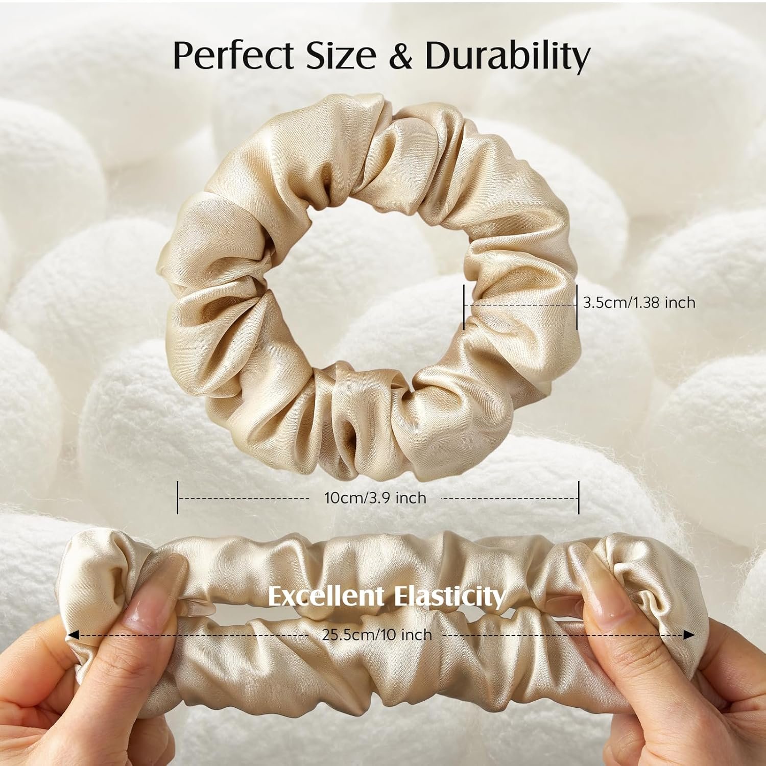 Comfortable and Traceless: Experience the perfect blend of style and comfort. YFONG silk scrunchies for hair, with an elastic stretch of 10 inches, suitable for most hair types and lengths. Ideal for curly, straight, thick, or thin hair, the silk scrunchies ensure a firm hold without leaving any imprints or causing discomfort.