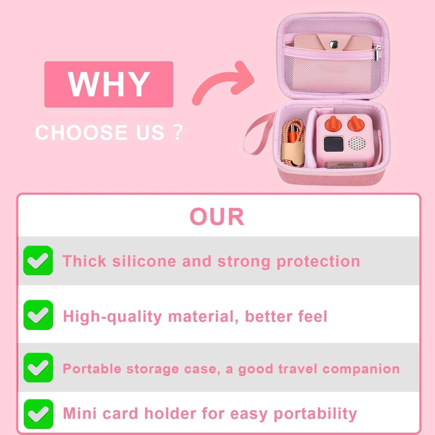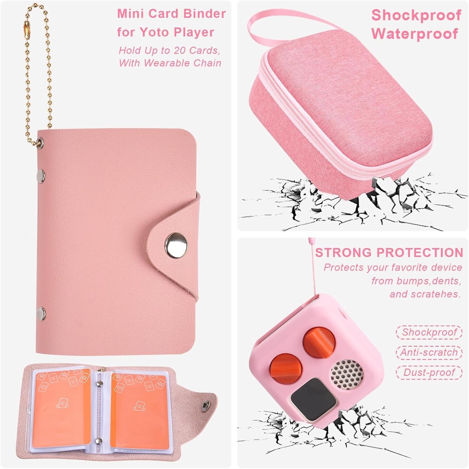 Complete Set: The set includes 1 silicone case, 1 storage case, and 1 card holder, the mini audio player is not included.