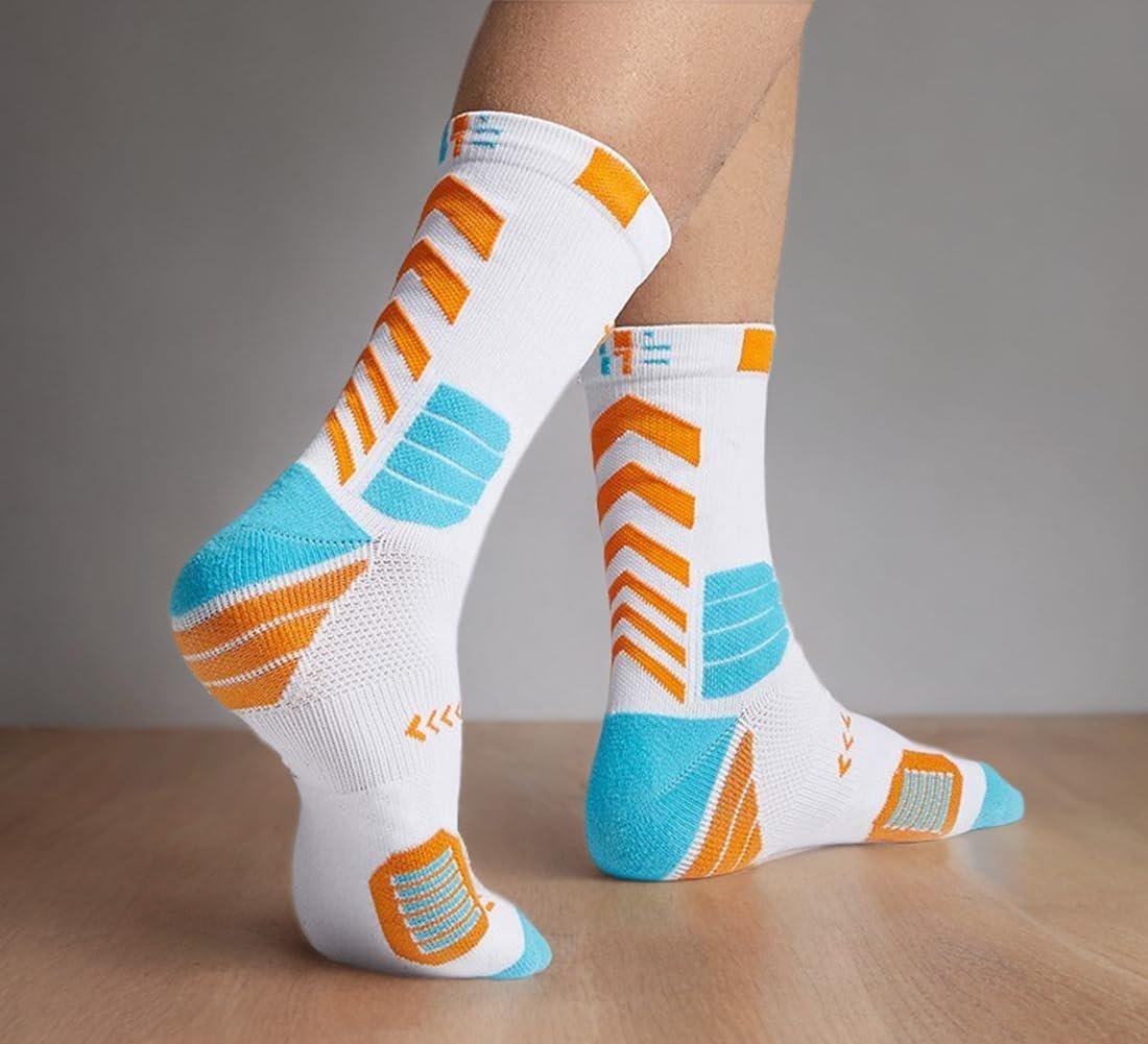 – Sport Socks Material: Cotton Blend, Made of 40% Cotton,40% polyester, 13% Nylon, 7% Spandex .