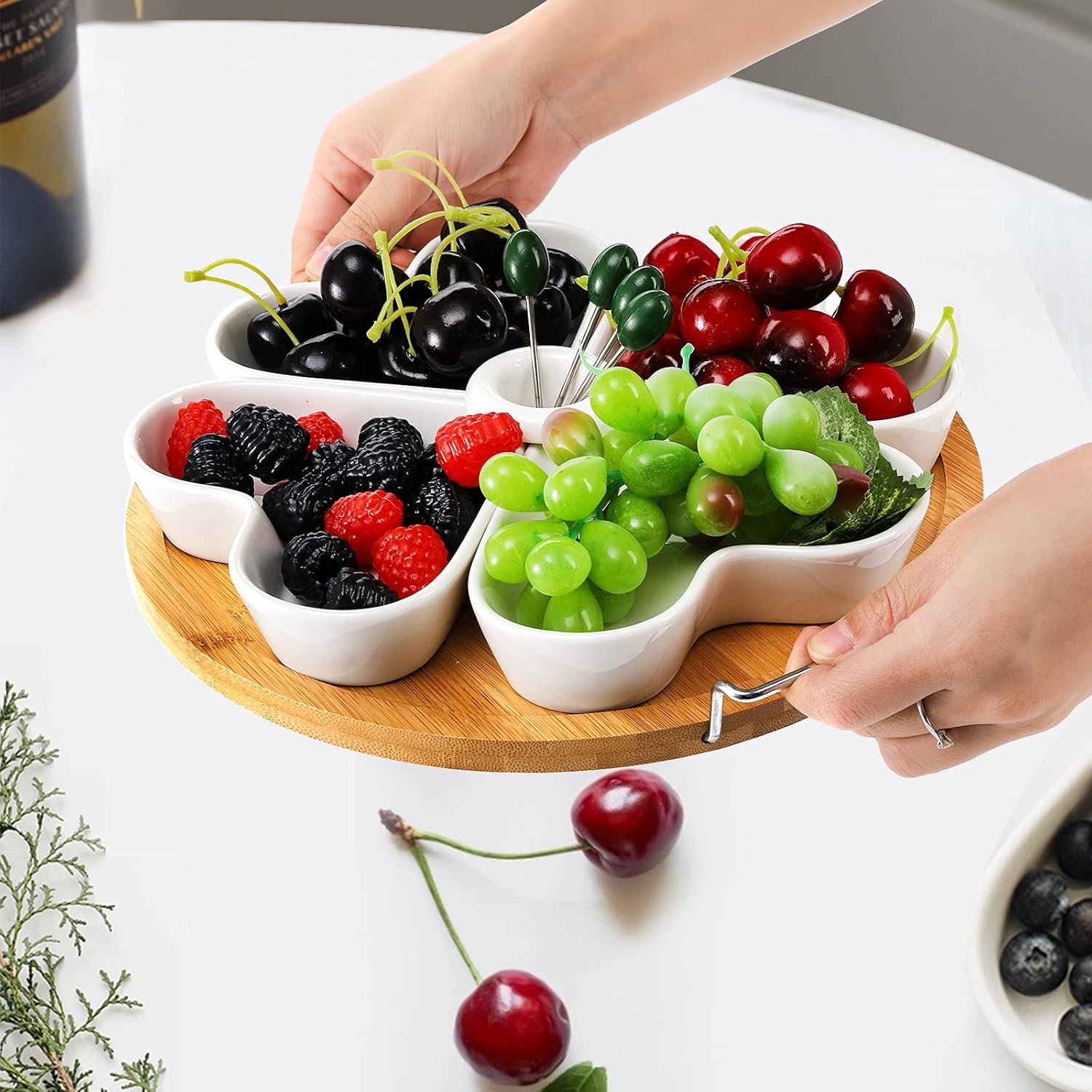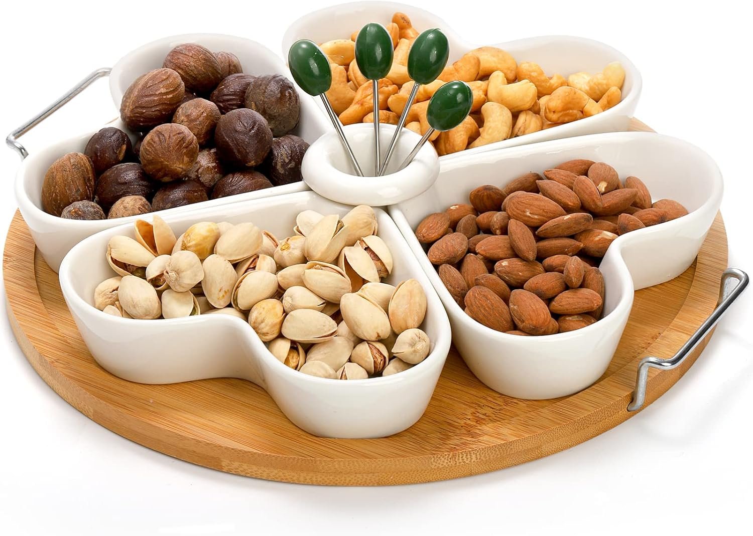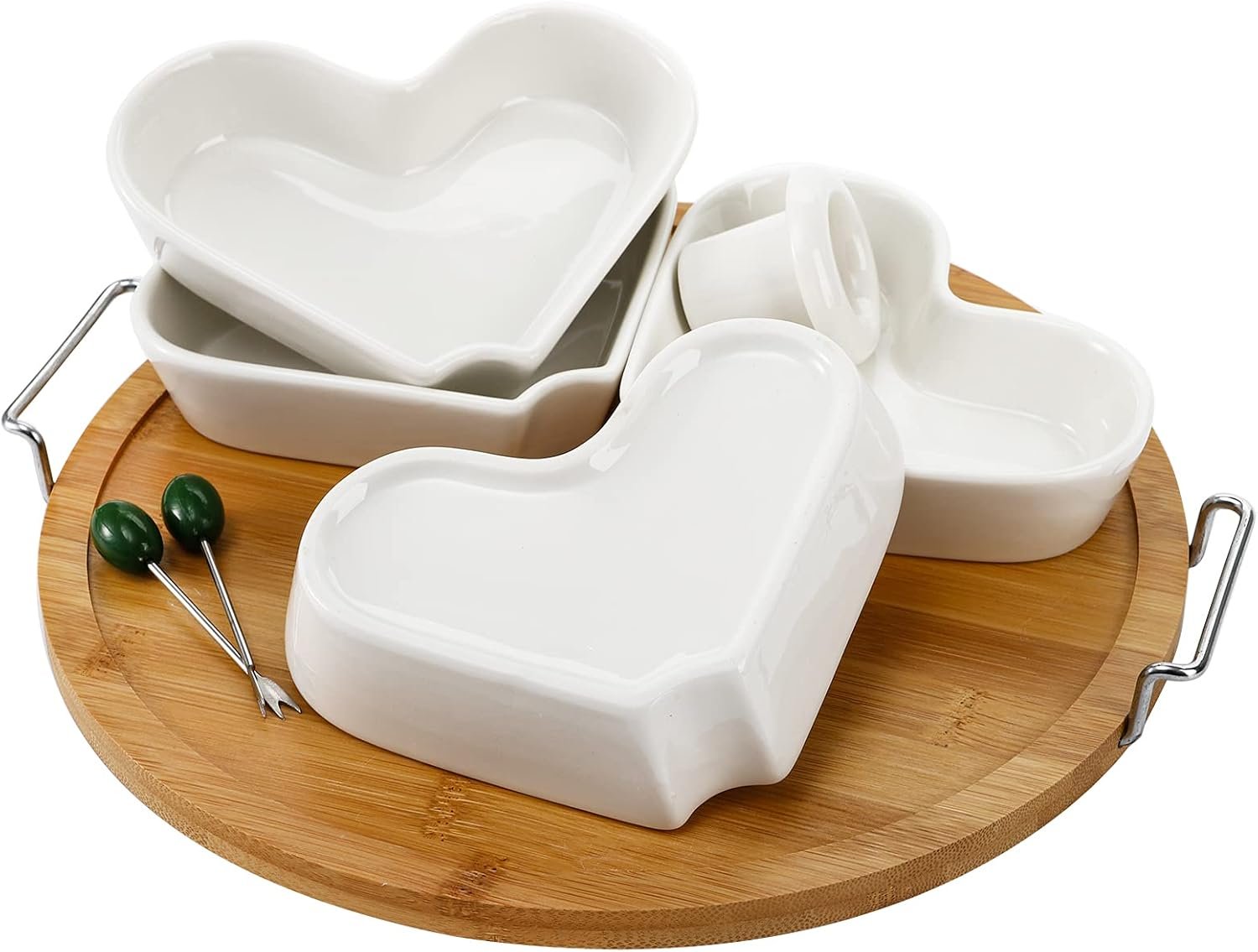 Perfect for Social Gathering: The modern heart-shaped design of the serving platter tray includes 4 divided sections and 4 metal appetizer picks, which is perfect for sharing appetizers with guests. The holder makes you to move and serve conveniently and quickly.