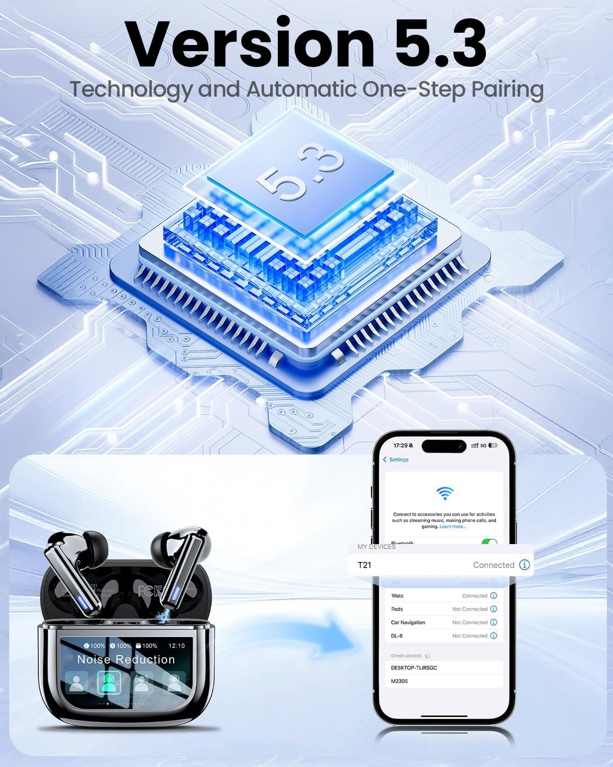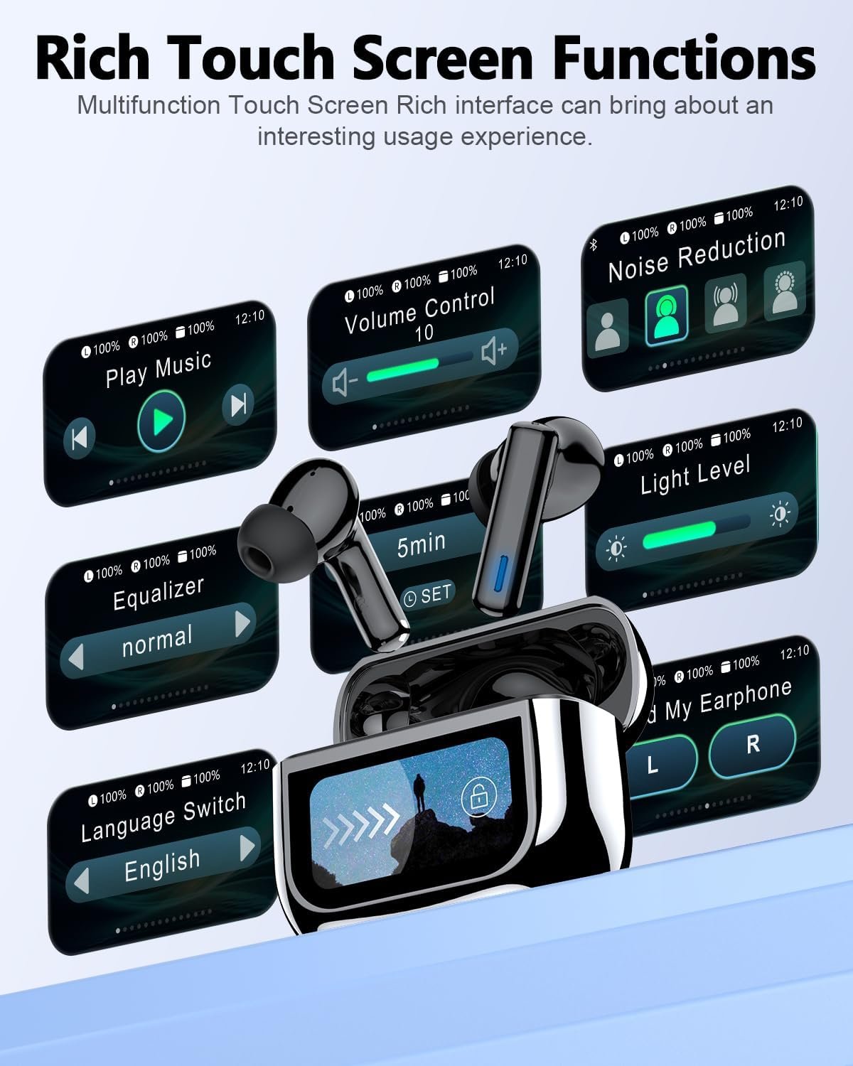 【Revolutionary Smart Touchscreen Case】 Our wireless earbuds feature a revolutionary charging case with a responsive touchscreen, integrating 10+ smart functions. Effortlessly skip tracks, adjust volume, locate misplaced earbuds, or control your phone’s camera remotely—all from the case itself. It’s your ultimate, portable control hub designed for a smarter, more convenient lifestyle.
