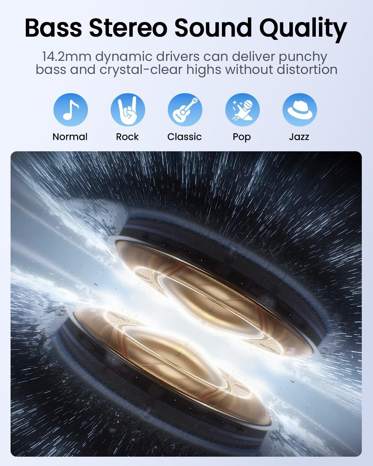【Studio-Quality Sound & Crystal-Clear Calls】 Experience audio excellence. Equipped with a large 14.2mm driver, our bluetooth headphones deliver powerful bass and balanced highs for studio-quality sound. Fine-tune it with 5 EQ presets. For calls, the dual-ENC microphones eliminate 98% of background noise, ensuring you sound crystal-clear even in crowded cafes.
