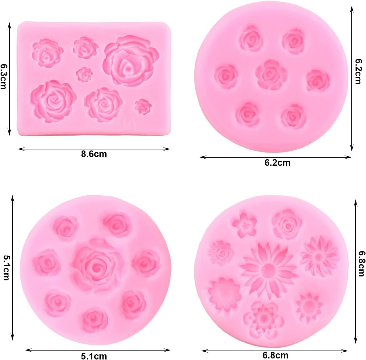 【 Rose Flower Fondant Mold】: Rose Flower Silicone Fondant Mold , it’s easy to create detailed shapes in exciting designs, Great for making cake decorating. You will get 4 pieces Rose Daisy Flower Silicone molds. Including 3pcs Rose Flower Silicone Mold, 1pcs Rose Daisy Silicone Mold. The size of each mold is different; Please refer to the picture for the specific size